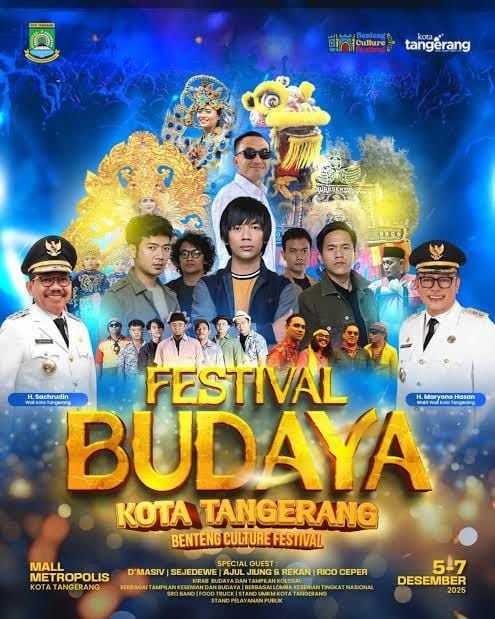 Kota Tangerang, – Budayantara.tv Kembali menjadi pusat perhatian jelang digelarnya Festival Budaya 2025, salah satu perayaan kebudayaan terbesar di wilayah tersebut. Dinas Kebudayaan dan Pariwisata (Disbudpar) memastikan acara tahunan ini akan berlangsung pada 5–7 Desember 2025 di Metropolis Town Square, dengan konsep yang diklaim lebih meriah, interaktif, dan melibatkan lebih banyak partisipan dibanding tahun-tahun sebelumnya.