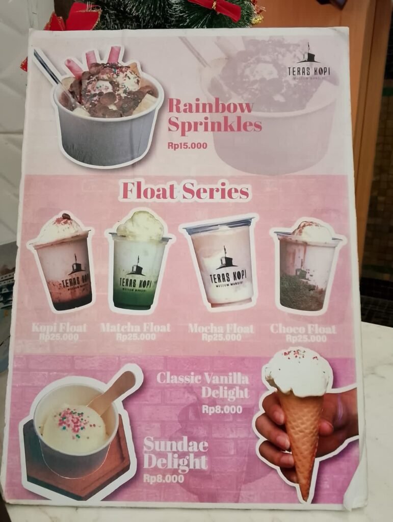 Teras Kopi Museum Mandiri menawarkan pengalaman unik melalui sajian kopi tempo dulu yang menjadi menu andalan. Tak hanya itu, beragam pilihan makanan ringan hingga berat turut melengkapi, seperti rice bowl with chicken teriyaki yang menjadi favorit pengunjung. Konsep ini menjadikan area museum bukan hanya tempat belajar sejarah, tetapi juga ruang santai untuk berdiskusi dan mencari inspirasi.