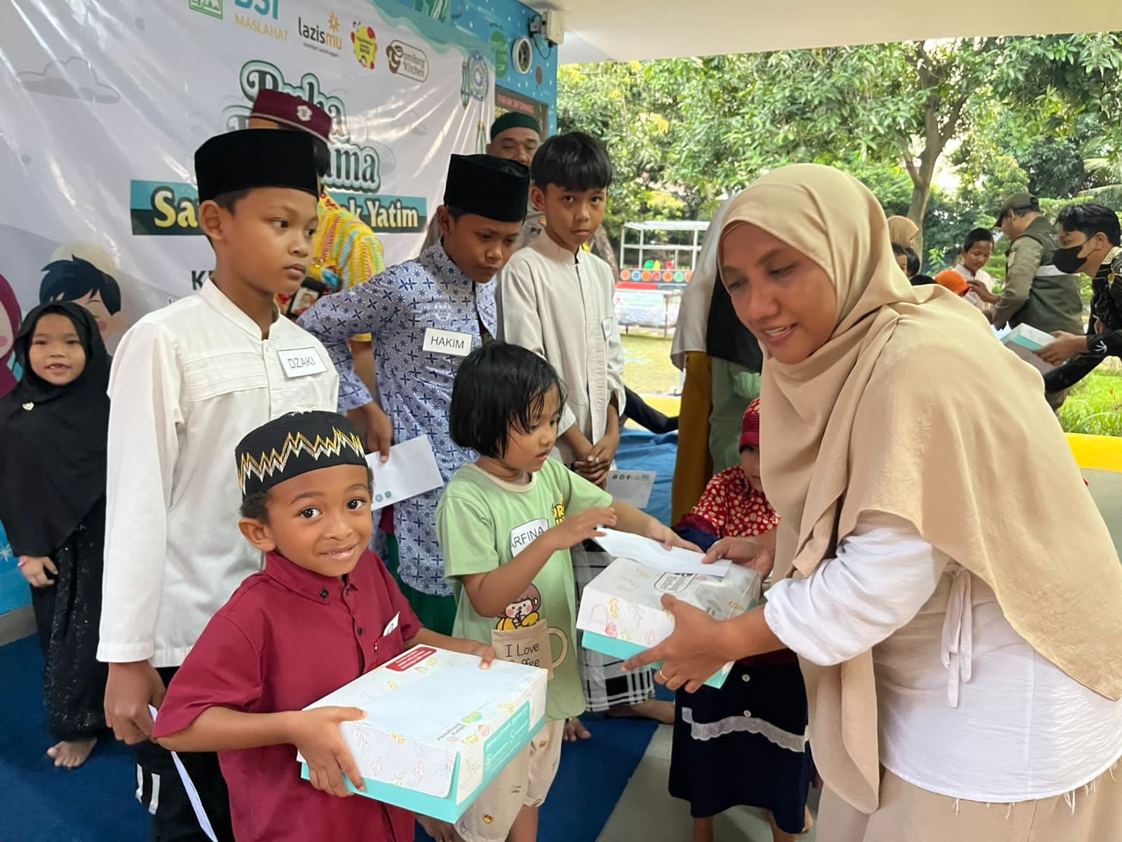 Setelah rangkaian permainan selesai, acara dilanjutkan dengan kegiatan santunan kepada anak-anak yatim piatu sebagai bentuk kepedulian sosial dan wujud berbagi kebahagiaan di bulan suci Ramadan. Anak-anak yang hadir tampak bahagia menerima santunan serta perhatian dari para tamu dan panitia yang terlibat dalam kegiatan tersebut.