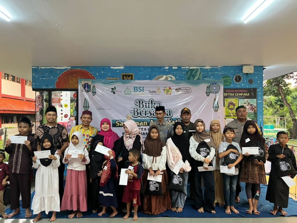 Jakarta,- Budayantara.tv.Suasana kebersamaan dan kepedulian mewarnai kegiatan Buka Puasa Bersama dan Santunan Yatim Piatu yang diselenggarakan di lingkungan masyarakat Kelurahan Rawa Buaya. di RPTRA Cempaka Raya RW. 012 Rawa Buaya.Jakarta Barat.Kamis (12/3/2026).Kegiatan ini diawali dengan permainan tradisional yang diikuti oleh anak-anak dengan penuh antusias. Permainan tersebut tidak hanya menjadi sarana hiburan, tetapi juga bertujuan untuk mempererat kebersamaan, menumbuhkan semangat sportivitas, serta mengenalkan kembali permainan tradisional kepada generasi muda.