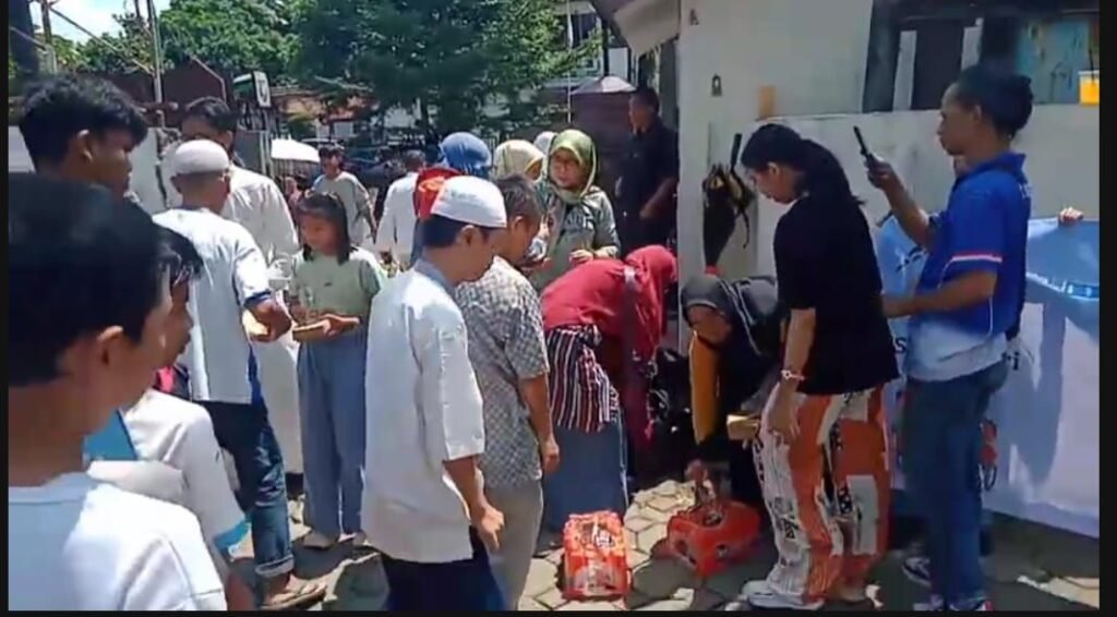 Dengan penuh antusias, anak-anak tampak bersemangat saat membagikan makanan. Senyum dan keceriaan terpancar dari wajah mereka, mencerminkan kepedulian sosial yang tinggi.